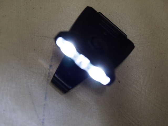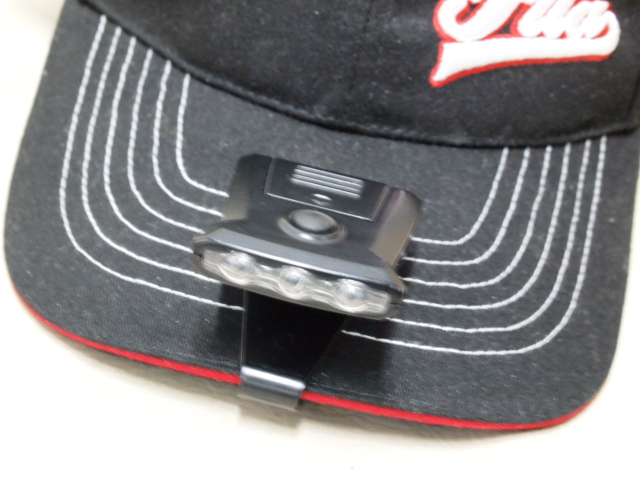 ご覧いただきありがとうございます。今回はLEDキャップライトを紹介します。作業する時にどうしても両手が必要な時には便利です。クリップ式で2ホワイトLED+1レッドLEDです。クリップは180度可動式です。重さは電池の入った状態で30gと軽量です。夜のランニングで帽子に装着して走るもヨシ!