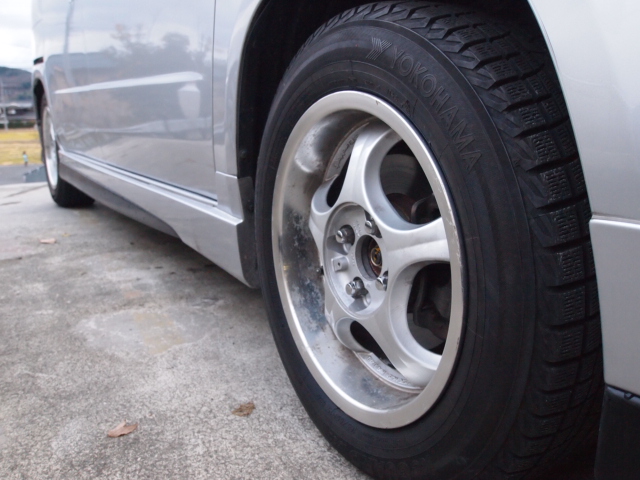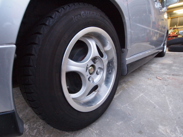 本日はスパイクにスタッドレスを組みました。現状の夏タイヤがまだ使用できそうなのでホイールのみあればと倉庫を探せば出てきました。シビックで利用してた深リムのアルミを使用しました。これが違和感なくマッチングしました。お客様と相談の上でのプランです。低予算で見た目も重視できる結果となりました。