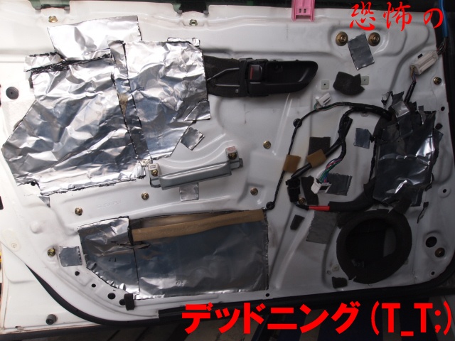 今回はデッドニングに挑戦しました。デッドニングとは車に内蔵されているスピーカーの音を良くするためにドアに制振処理を施したり音の抜けを良くしたりする作業の事です。今回は簡易作業いたしました。以下が簡単な手順になります。