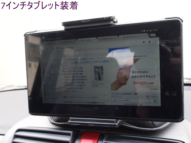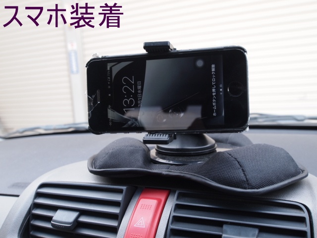 そこでネットで調べてるとamazonでスタンド用のマウントを発見しました。見た目はあまり良くもないのでなぜだろうと思いつつ価格が安かった事とレビューの良さで購入しました。もちろんナビスタンドは別途必要です。私はポータブルナビをメインに使用しますのでそれに合う物を同じくamazonで購入しました。7インチのタブレットまで装着できるスタンドです。試しにスマホも装着OKです。